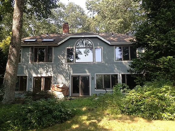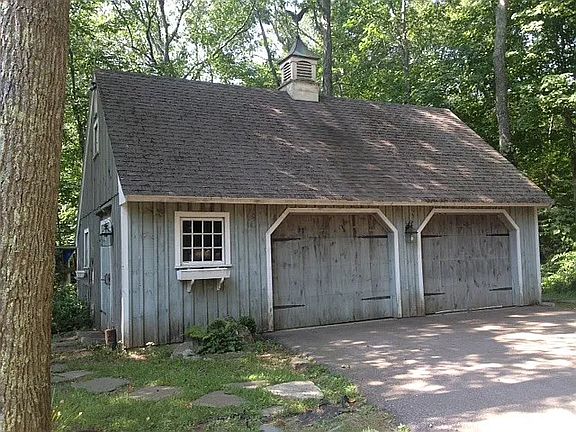 Freshly painted, spacious 4-bedroom home (with a first-floor 5th bedroom/office) nestled on 2.5 wooded acres in family-friendly, North Stonington. The living room has a beautiful stone wood burning fireplace, cozy wood ceilings, and French doors which open to a flagstone patio on serene pond with its own (wild!) private island. Kitchen features stainless steel appliances and an eat-in granite table surrounded by rich cherry cabinets. Open concept design connects the kitchen to the living room and a large dining room with sitting area. Large second floor living area is open to the foyer and boasts 10-foot ceilings and large windows overlooking the pond. Living area includes an oil-saving woodstove. Three second level bedrooms include a large primary bedroom with tub ensuite and a large, high ceiling bedroom with 2 fun loft beds! Central air keeps the upstairs cool in the summer months. The washer and dryer are conveniently located on the second floor. A large detached, 2-car garage has plenty of space for storage.