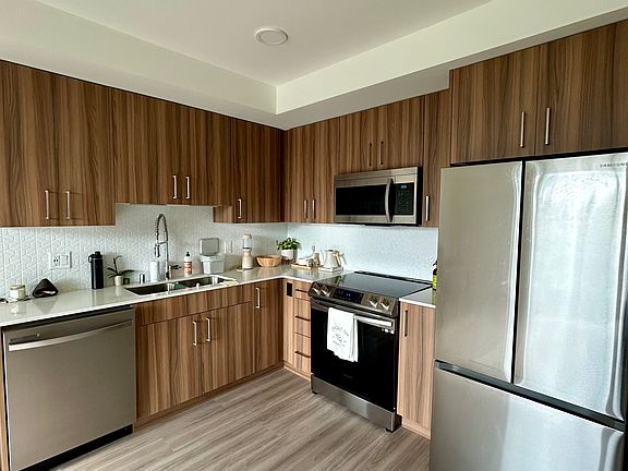 - Exterior features: Community coworking space w/ private pods, Designated bike & pet wash room, Electric Vehicle Charging Station, Heating system: Wall, Less than 5min walk to public train transport, TV Lounge, Yoga room with Tonal System & account included