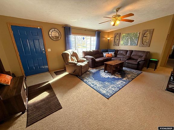Beautiful 4-bedroom, 2-bathroom one-level home with an exceptional layout. This home is perfect for entertaining with an open kitchen, dining room, and living room. The kitchen features lots of cabinets, a center island with seating, and a corner pantry. The large master suite has double closets and a 5-piece bathroom. The family room has a wood burning fireplace plus room for exercise equipment or games. Outside you will love the covered composite deck and privacy fenced backyard. Amenities include vinyl siding, vinyl windows, vaulted ceilings, built-ins, and central air conditioning. The 1280 SF metal Cleary building has plenty of room for your vehicles and toys. This home is located on two full lots close to schools. Call Lisa Cochran at 307*331*2325