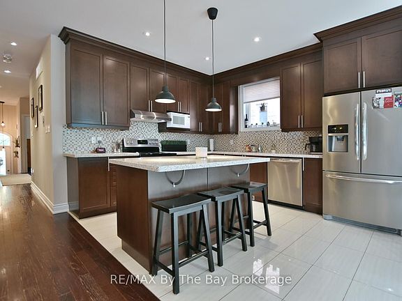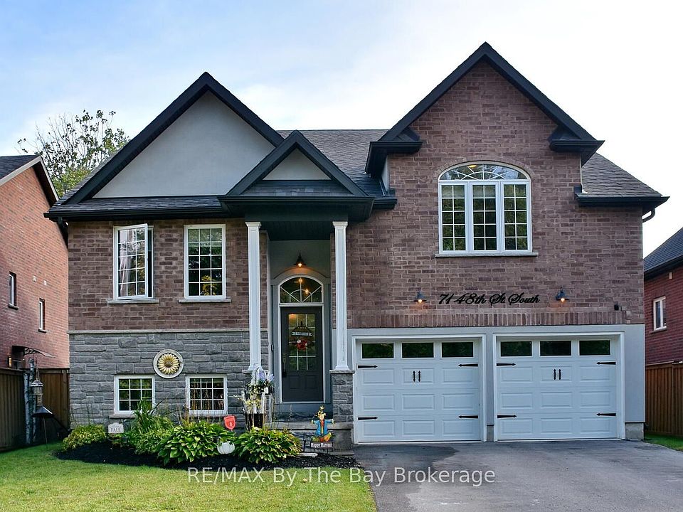 This all-brick, well-built home in Wasaga Beach's west end offers excellent in-law potential. Boasting four bedrooms, it's located just minutes from sandy beaches, shopping, restaurants, and the skiing opportunities at Blue Mountain. The open-concept main level features 9-foot ceilings and an upgraded kitchen with stainless steel appliances, a center island, and quartz countertops. Step out onto the deck with privacy louvers that overlook a fully fenced backyard. The spacious primary bedroom includes walk-in closets, vaulted ceilings, and a full ensuite bath. A second bedroom also has its own 3-piece ensuite. The home includes a double garage with inside entry to the main level, and the unspoiled basement offers high ceilings, large windows, and roughed-in plumbing for a fourth bathroom perfect for creating an income-generating suite. Situated on a quiet street, this home offers both comfort and convenience.