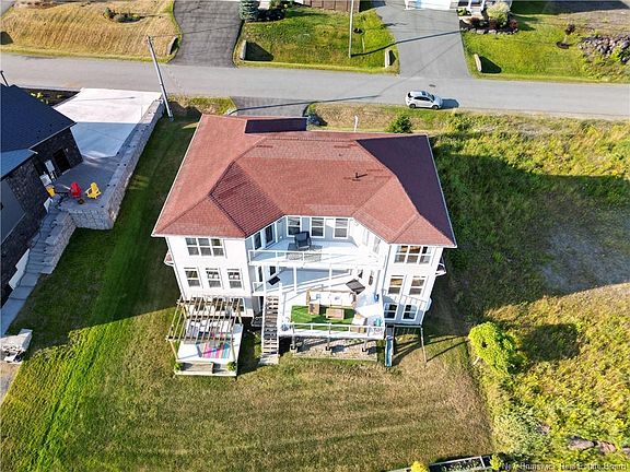 Stunning Hilltop Home with access and Panoramic Views of the Saint John River. Perched atop a scenic hillside, this exceptional 4+1 bedroom, 3.5 bath home offers breathtaking panoramic views of the Saint John River, with private stairs providing access to the water below. Designed with both elegance and functionality in mind, the home showcases hardwood, ceramic, heated marble, and granite finishes in the main entry, main floor bath, and upstairs bathrooms, bringing warmth and luxury to every space. The main living area flows effortlessly onto a large deck, where you can take in the stunning river views, while a charming pergola in the backyard provides a serene retreat. Inside, you'll find a formal dining room and a spacious eat-in kitchen, perfect for everyday living and entertaining. Upstairs, you’ll discover four generously sized bedrooms, including a luxurious primary suite featuring a private balcony, walk-in closet, and a spa-like ensuite for ultimate comfort. The fully finished basement offers additional versatility, boasting a fifth bedroom, an entertainment room, a built-in bar, and a full bath, making it the perfect space for guests or a cozy night in. With its elevated location, this home delivers breathtaking year-round views while maintaining private water access via a staircase, ideal for enjoying kayaking, boating, or simply soaking in the beauty of the riverfront setting. Don’t miss this rare opportunity. There is a virtual tour for your viewing.