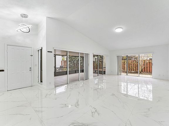 This beautifully renovated 3-bedroom, 2-bathroom ranch-style gem features a NEW ROOF and exudes modern elegance with a touch of classic charm. Step into a bright and spacious open floor plan with gleaming marble-like tile floors and vaulted ceilings that flow seamlessly into the heart of the home. A stunning kitchen with granite countertops, custom cabinetry, and stainless steel appliances. The primary suite boasts a spa-inspired bathroom with a glass shower and sleek finishes, while two additional bedrooms offer ample space for family, guests, or a home office. Step outside to your large screened patio, the perfect retreat for year-round entertaining or relaxing in the privacy of your fully fenced backyard. The lush landscaping and a beautifully paved side yard provide the ideal setting for outdoor dining or gardening.