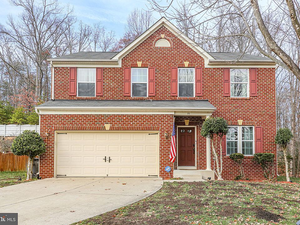 Welcome to 71 Bismark Dr, a beautifully well-maintained brick front colonial with a 2-car garage and concrete driveway that backs to trees on a cul-de-sac. In the basement you will find two bonus rooms with closets, a full bathroom, recreation room with mounted flat screen television, and a storage/utility room. The open floor plan on the main level has hardwood floors throughout the foyer, study, combination dining/living room, and kitchen. Tile floors adore the sunroom with a half-bathroom off the kitchen. The eat-in kitchen has stainless steel appliances, granite countertops, recessed lighting, and a breakfast bar. Cozy up to the gas fireplace in the living room while you enjoy the mounted flat screen television. No need to buyer a washer and dryer, this rental includes an electric washer and dryer conveniently located on the upper level with the bedrooms. The large master bedroom has two walk-in closets and a master ensuite with separate shower and garden tub. Community amenities include sidewalks and a playground. This gem in the cul-de-sac is close to shopping and easy access to Route 1, I-95, and Quantico MCB.