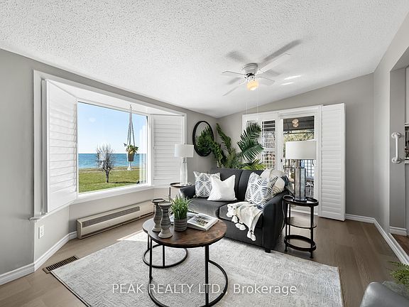 Exceptional Lakeside Retirement Living in Wilmot Creek! Welcome to this beautifully updated 2-bedroom bungalow in the sought-after Wilmot Creek Adult Lifestyle Community. This bright and spacious home offers a sun-filled living room and cozy sunroom with bay windows and a gas fireplace. The renovated kitchen features modern finishes and ample storage - ideal for both daily living and entertaining.Step outside to your private backyard oasis with unobstructed views of Lake Ontario, complete with shaded seating areas - perfect for morning coffee or peaceful evenings by the water.Enjoy a vibrant, low-maintenance lifestyle with access to premium community amenities: indoor & outdoor pools, private golf course, pickleball & tennis courts, clubhouse with organized events, on-site pharmacy, and salon. Located in a welcoming and active community, this home offers not just comfort, but a lifestyle you'll love.