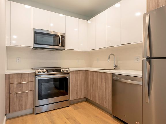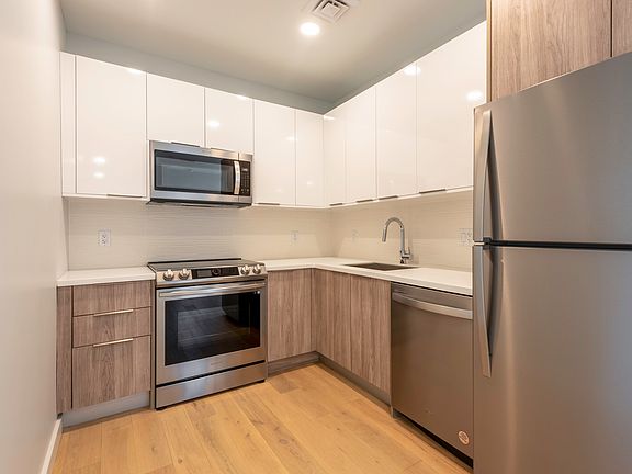 AUGUST 1 - Somerville Union Square new construction South facing 1 bedroom 1 bath! Located right in the heart of Union Square with award winning dining, Bow Market and the T. Spacious unit with white oak flooring throughout, high ceilings, recessed lighting and central air! Laundry in unit! Lovely, sunny living room with lots of room for living space and dining and/or home office. Gorgeous triple pane windows, ERV system for constant air renewal. Modern kitchen with Porcelanosa cabinets and Krion counters, Grohe fixtures, stainless appliances, dishwasher and disposal. Modern tile bathroom with good storage. Large bedroom with space for a home office and double closet with built ins. An elevator building with bike parking and a huge common roof deck with spectacular views! Available August 1. Easy access to Porter, MIT and Kendall Square and the T!