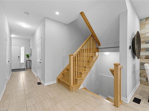 Perfectly situated on a large corner lot in a quiet neighbourhood, this bright, freehold end unit townhome, with a stone, stucco & brick exterior, provides a generous 1,799 sq/ft of above grade, open-concept living space. Inside, you’ll be greeted by 9 ft main floor ceilings, a powder room, a kitchen equipped with stainless steel appliances, rustic wood-finished tiling, quartz countertop, and an oversized pantry. The kitchen is open to both the living room, with additional windows, and dining area, perfect for entertaining and staying connected with your friends and family. The all-oak staircase with square spindles leads upstairs to three spacious bedrooms, all with walk-in closets, and 2 full bathrooms, both featuring quartz counters, including a recently renovated primary ensuite shower, and convenient bedroom level laundry room. Downstairs is home to a newly renovated basement with oversized windows, finished with high quality paint and hardware, featuring an additional 490 sq/ft of living space, with an open-concept family room, an office space, a powder room, and two large storage rooms. With a large privacy fence, you can enjoy your backyard and bonus side yard space which allots a new concrete patio and gazebo, and plenty of grassy space. This home is ideal for any type of buyer, from young family to retirement, to working from home needs, and is conveniently located close to parks, shopping, and highway access. Could this be the one you've been waiting for? Don't miss out on a great home!