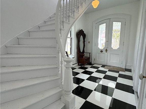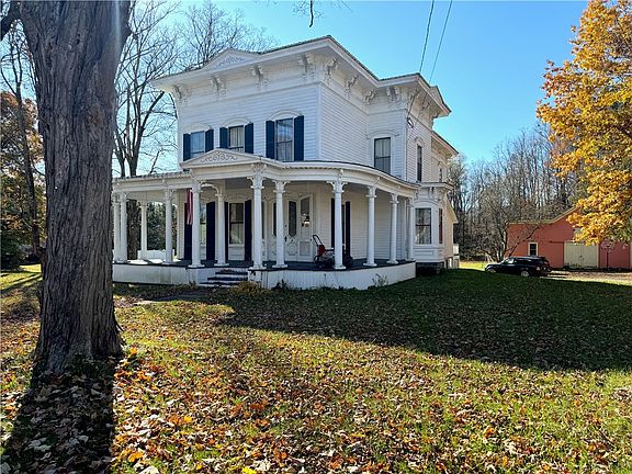Unbeatable VALUE for this 6 BR, 3-bath 3848 sf home on 0.86 acres! Seller has improved the price taking into account for some of the work needed. Thinking of running a B & B, having a great Baseball rental or just want to live grand & glorious, this is the place to explore those possibilities! If you enjoy ENTERTAINING this is the house for you! There is so much space! On the 1st floor is the kitchen, DR, LR, FR, laundry room, full bath, and 2 bonus rooms to dedicate to your personal wants/needs. Family room off main entrance with pocket doors(now used as a BR). One of the bonus rooms has its own entrance, so could be a professional office. 2nd flr Primary BR with its own Bathroom and an attached room used as HUGE walk in closet. NEW 200 amp elec. service. All Plumbing and heating replaced with PEX. New Rubber membrane roof 2021. Spacious carriage house with a 2nd floor for that workshop you have been wanting or convert to extra living space. Back deck over looking the expansive back yard. Enjoy sitting around the fire pit by the creek that runs along the back property line. Wrap around front porch. Plenty of parking for your guests. House still has some finishing touches for you to complete.