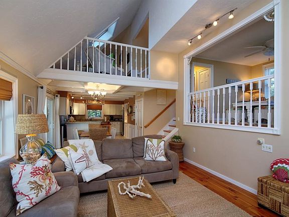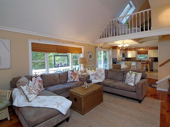 Wonderful Cape Cod Contemporary within walking distance to Eagle Pond. This property has been meticulously cared for and is just a short bike ride to the village. Inside you will find an open layout, cathedrals for a light airy feel, multiple upgrades in sought after Cotuit. The kitchen boasts granite countertops, built-ins and stainless appliances with tile floors and beamed ceiling. The lovely dining area opens to the large deck overlooking professionally maintained yard with irrigation. The warm and inviting living room has cathedral ceilings,wide pine floors and fireplace with marble surround. Just a short set of stairs to the den/sitting room with wide pine floors, built-ins and overlooks the living room. The loft area is ideally suited for den/office. There are 3 spacious bedrooms with cathedral ceiling.Please verify independently.