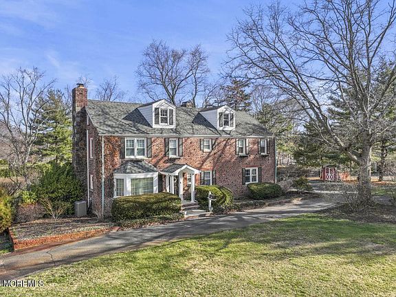 It is not often you find such a special home come on the market! This 5 Bdrm stately brick center-hall colonial has 3 full baths and 3 half baths along with 4 fireplaces! It sits majestically on 1.37 landscaped acres with a circular driveway and detached garage. Inside boasts gorgeous wood floors throughout, high ceilings, original peanut stone work, decorative moldings, bay-window seats, built-ins and spacious rooms. The gracious living room and large dining room can accommodate a crowd for daily life and entertaining! The newer kitchen has granite countertops, tumbled marbled backsplash, shaker cabinets, and stainless steel appliances including a Viking stove. It opens to a family room with a wood burning stove for casual dining and living. Rounding out the first floor is an office, grand center staircase, guest bath, and access to the backyard, basement stairs and a 2nd staircase to upstairs. The second level continues with its beautiful hardwood floors and 5 large bedrooms including the primary bedroom and primary en-suite bath, a second en-suite bedroom and bath, another full bath and a half bath. Stairs lead up to an enormous attic that only needs paint and flooring to be completely finished for another level of living space! The basement is finished with carpeting, another half bath, fireplace, and comfortably high ceilings. Outside is a level back yard and large front yard allowing the home to sit very far off the road. All this in beautiful Middletown close to shopping, restaurants, Seastreak Fast Ferry to NYC, NJ Transit train station, GSP, bay beaches, Gateway National Recreation Area at Sandy Hook, County Parks, Golf Courses, downtown Red Bank, Theaters and excellent schools.
