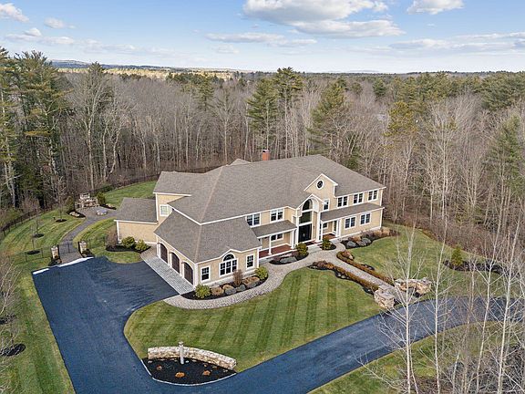 A signature Cumberland property designed for entertainment, recreation, and enjoying the good life. In the highly desirable Jordan Farm subdivision, this estate property with a 10,005 sqft main house and 1,640 sqft guest house over the two story barn is being offered to the market for the very first time! Entering into the main house, the primary level has two large entertaining spaces both opening to the outdoors and the gunite saltwater pool complimented by a gas fire pit, an adjacent wood burning outdoor chimney, and a pool house containing a bar and half bath. Also on this level is a spacious eat-in kitchen, a full bar, a professional grade 1/2 court basketball gym, a dramatic two story foyer, formal dining room, a first floor bedroom with adjacent full bath, and attached 3 car garage with radiant heat in the flooring. Upstairs are four additional bedrooms, including two suites. The primary suite features a spa-like bath, custom tile shower, and two large fully custom walk-in closets. The lower level has something for everyone, with a theater room, billiards room, golf simulator, oversized full bathroom, and private office. Returning to the exterior, over a private bridge, you'll find a large two story barn with a 2 bedroom guest house on the second level. This property provides stately curb appeal, stunning grounds and a feeling of privacy and seclusion. Eminently convenient to Cumberland Center, 70 acres of trails, and just 2 miles from the town's public landing—featuring beach access and a dock. All only a short drive to downtown Portland, Yarmouth Village, and Freeport.