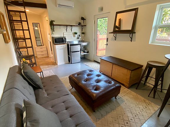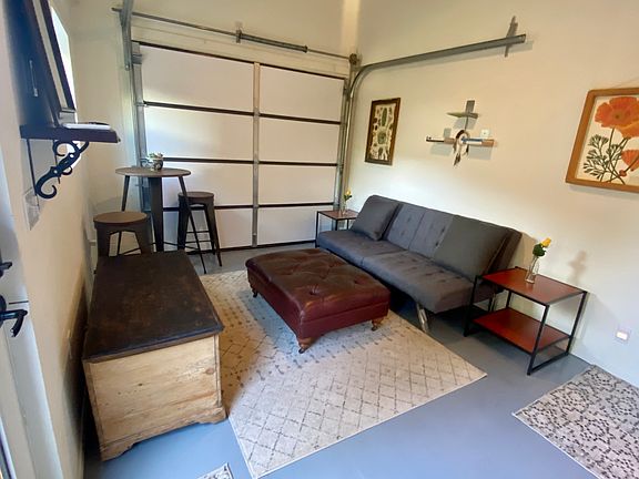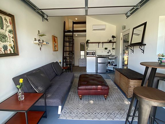 Partially furnished detached studio for rent! It is located off Ventura Avenue, 3 miles from the beach and great surf spots, 2.5 miles from downtown Main Street ( various restaurants, breweries, and boutiques). Walking distance to a bus stop, laundromat, vintage store, delicious Mexican restaurants, liquor stores, and grocery stores. There is a train station 2.5 miles away with a cheap fair to Carpinteria and Santa Barbara. Half a mile away from a paved bike trail that goes to Ojai. The studio is detached from the main house. Has private off-street parking (outside with shade). Private entrance. Enclosed patio. Lofted full-size memory foam bed. Futon couch that converts into a full-size bed for guests. Kitchenette with mini-fridge and microwave. Open closet with shelves and hanging racks. Full-size bathroom. Ceiling fan and track lighting. AC/heat system. An insulated garage door that opens gives it a very industrial feel. Nestled under a beautiful avocado tree! Three-month minimum then month-to-month lease thereafter with utilities and gardening services included.