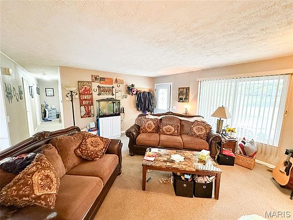 Inviting 3-bedroom, 2-bath ranch with 1,680 sq. ft. on 2 scenic acres in R-80 school district. Tucked in a quiet, friendly subdivision just a few miles from shopping, dining, and local amenities, this home offers the perfect blend of privacy and convenience. Enjoy peaceful mornings on the covered front porch, unwind with a book, or host family and friends on the oversized back deck overlooking a mix of open yard and woods. Inside, a spacious, light-filled kitchen with rich wood floors, abundant cabinetry, electric stove, refrigerator, and dishwasher flows seamlessly to a separate dining room with wood floors. The primary suite includes a private bath with walk-in shower, while a cozy family room provides additional living space. Main-level laundry, attached garage, storm shelter, central A/C, and electric heat add comfort and practicality. Intercounty electric, and well water. With room to grow both indoors and out, this move-in ready property is ideal for families or anyone seeking a serene country lifestyle close to town.