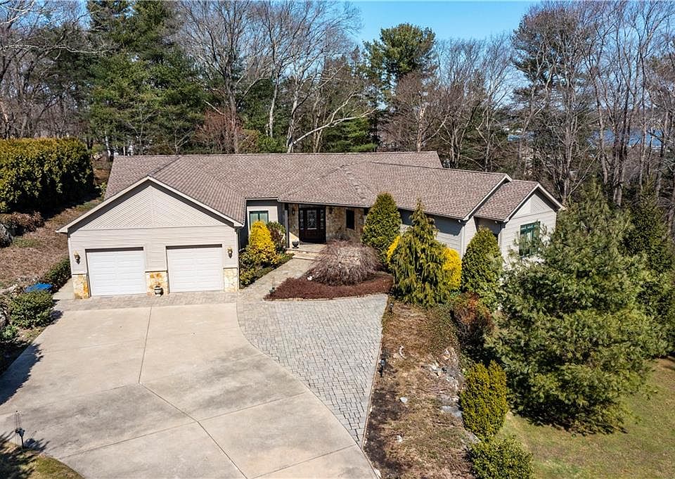 This young walkout contemporary ranch is packed with almost every imaginable upgraded feature including a full one bedroom In-law apartment, Exotic Stone counter tops, 5 inch walnut stained oak floors throughout, 3 separate HVAC systems, stone fireplace in the Vaulted Great Room, chefs kitchen with pantry and high end stainless appliances, walk-in pantry, concrete driveway, generator, two laundry rooms, central vac and alarm system, and more. The finish carpentry is unmatched with custom built-ins, bar area, and detail crown work. The full walkout basement has sliders to the stone wall lined back yard. Dramatic landscaping includes sprinklers , specimen plantings, water feature fountain, and custom stone walls and walkways. Close to the waterfront and Marinas, the downtown East Greenwich shopping and dining district, and has easy Highway access.