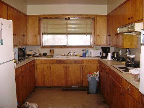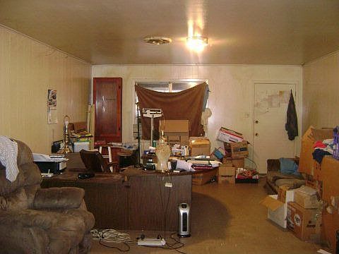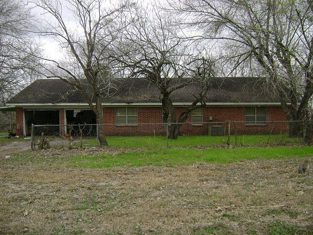 House is a fixer upper and is being sold as is. Large rooms with lots of potential and has lots of storage. Acreage is a prime location that borders Hwy 59 S. Concrete block bldg with overhead door, facing the highway, was used as a shop by previous owners. Carport on the property was used to park a large RV. Two portable bldgs included and another one that houses the well. There is a sunroom to the back of the home that opens up from living area. Covered patio. Will convey 100% mineral rights