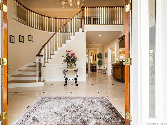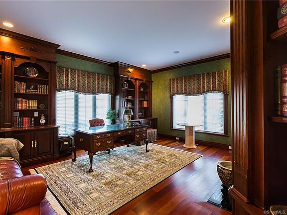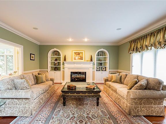 Breathtaking, Single-Owner, 6691sqft Brick Colonial w/ 5 Fireplaces set on quiet cul-de-sac of like homes. 5 Bedrooms, 6.2 Baths with ample living and entertaining space! Marble tiled open Foyer. Sprawling Eat-in-Kitchen Breakfast nook and built-in sitting area, Center island w/ Breakfast bar, Granite countertops, Stainless Steel appliances including double oven, double dishwasher, and gas cooktop. Family Room, Formal Living Room, and Dining Room, each w/ Fireplace, dentil molding, and Cherry Hardwood Flooring. Warm and Inviting Sunroom with Bay window, French doors and tile floor. Study w/ gorgeous Built-in Bookcases and Fireplace. Luxurious Master Suite w/ trey ceilings, Sitting Room w/ Fireplace and Cathedral ceilings, att full bath covered in marble with jetted tub. 4 additional Bedrooms all w/ attached full baths! Upstairs Bonus Room w/ Hardwood floors. 1000sqft finished Walk-out with In-Law potential w/ multiple windows and Separate entry. Large living space w/ Fireplace and wetbar, Full Bath, Guest Quarters. Upgraded Mechanicals including Hydro Air Heat, Central Air, Central Vac, Wired Audio, Nest thermostats, and more. Exterior is up-lit and professionally landscaped with well maintained plantings and stonewalls. Turn-around driveway and 4 car attached garage. This home is immaculate! Quiet neighborhood only minutes from I-84. 1hr 45min from Manhattan. 15 min from Oxford Airport. 1hr from Bradley International Airport. 1hr 35 min from Laguardia Int'l Airport.