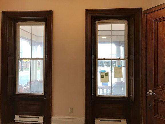 Multiple bay windowsOutdoor arcade style porchStained glass accents