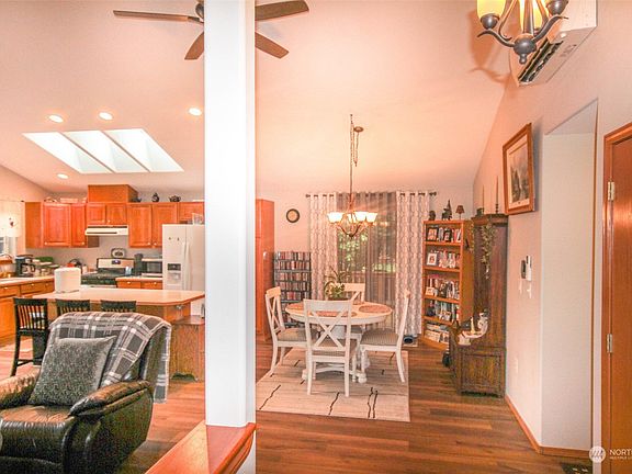 This move-in ready home has 3 bedrooms and 2 baths on one level. Open concept kitchen with a large island, skylights, and a gas cooking stove. The living area is open to the kitchen and has vaulted ceilings and a gas fireplace/stove. Spacious master bedroom with walk in closet & bath, Landscaped with mature flowering trees, an abundance of rhodies, a covered patio, and a firepit for your enjoyment. Major upgrades in 2020 include all new flooring, new windows and skylights, interior & exterior paint, propane fireplace/stove and cooking stove, new pex water pipes, water heater, and mini split.. Home is wired for generator and 3k gen.