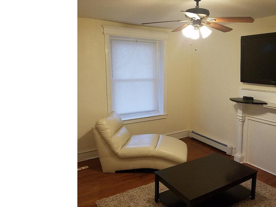 Very large 4 bedroom 2 bath stone front twin. Completely rehabbed .New hardwood floors on first floor. Large living room with recessed lighting and a ceiling fan. Island kitchen has new 42 inch maple cabinets and granite countertops with a subway tile backsplash stainless steel appliances garbage disposal and dishwasher. There is a full bath on the first floor behind the kitchen. The laundry area is on the first floor. There is a rear yard with a 6 foot stockcade fence. On the 2nd floor there are 4 bedrooms all with ceiling fans and a full bath with a jetted tub. All rooms are pre wired for phone data and video. Full unfinished basement that is 16x54
