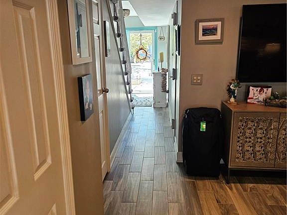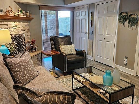 Beautifully renovated and meticulously maintained townhouse with modern updates throughout. The main level features a versatile rec room with wood -look tile flooring and a stone gas fireplace, plus a half bath, stackable laundry, and one-car garage. Upper level, the open -concept kitchen and dining area boasts granite counters, stainless steel appliances, and Anderson sliding doors leading to multiple Tres decks. The spacious living room features brand- new luxury vinyl tile flooring and abundant natural light. The top floor offers two large bedrooms, including a master suite with cathedral ceilings, walk-in closets, and a skylit full bathroom. Outdoor amenities include a gazebo with ceiling fan, brand new sliding, and excellent curb appeal with stylish front door and upgraded mailbox. This spotless, move-in ready home is a must see!