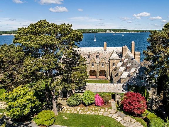 Commanding an ideal anchorage on Gloucester's coveted Eastern Point, "Stoneacre" sits at tide's edge and floats above the water like a yacht in the harbor, the waves seemingly at arm's reach from every room, a cruise or sail just a moment away at the end of a deep-water dock with double moorings. Constructed of hand-cut granite block and set deep in granite ledge, the home is aptly named and built for the ages. An iconic presence for over a century, Stoneacre today offers a seaside estate without peer. Drive through the hand-carved wooden gates and enter a world where all is "luxury, peace and pleasure." The home's lavish scale--9+ bedrooms, 6 full baths, 4 half baths, 8 fireplaces, 10,000 sf of living space (plus 6,000+ sf of partially finished space on the 3rd floor)--is balanced by interior spaces of understated elegance and ease. With its immaculate grounds and fortress-like construction, Stoneacre offers the ultimate refuge and family compound at a time when it is needed most.