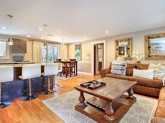 Look no further - Move in condition and fully renovated spacious updated home offers one level living with a full finished lower level. Popular neighborhood setting includes walk to town, schools, dog park and pond location. Enter into the fireplace family room open to the new kitchen with stainless appliances, stone counters and island. Dining room overlooks the enclosed level lot. Step down and enjoy the sunlit den with cathedral ceiling and deck access. There are three bedrooms on the main level with updated bathroom. Hardwood floors throughout. Open floor plan extends to the full finished lower level. Newer bar area with sink and game room is the perfect spot to enjoy with guests or family. There is also a guest suite with new full bath, laundry room and workspace. Attached garage with attic storage. The private lot is a great place to relax. Close to major routes and multiple trains. Further updates include Roof, Gutters, Kitchen, baths and electrical, AC and heating system