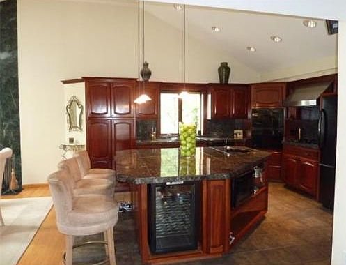 Custom renovation throughout with thoughtful detail. Kitchen is a chefs dream with european appliances including double wall oven, large gas cooktop with hood and warming lights, two sinks, mahogany cabinetry, granite counters, wine cooler and custom lighting.. Open floor plan to dining room with cathedral ceiling, skylights and fireplace, living room is 30 ft. long with access to wood deck, Master suite is elegantly appointed with fireplace, custom cabinetry, soaking whirlpool tub, separate large multi head shower and marble floors. This house has been renovated down to the studs with wiring, lighting, heating etc.. please see attached sheet with list of improvements..