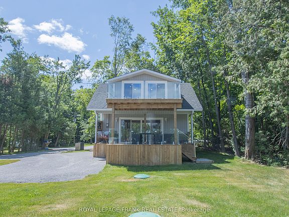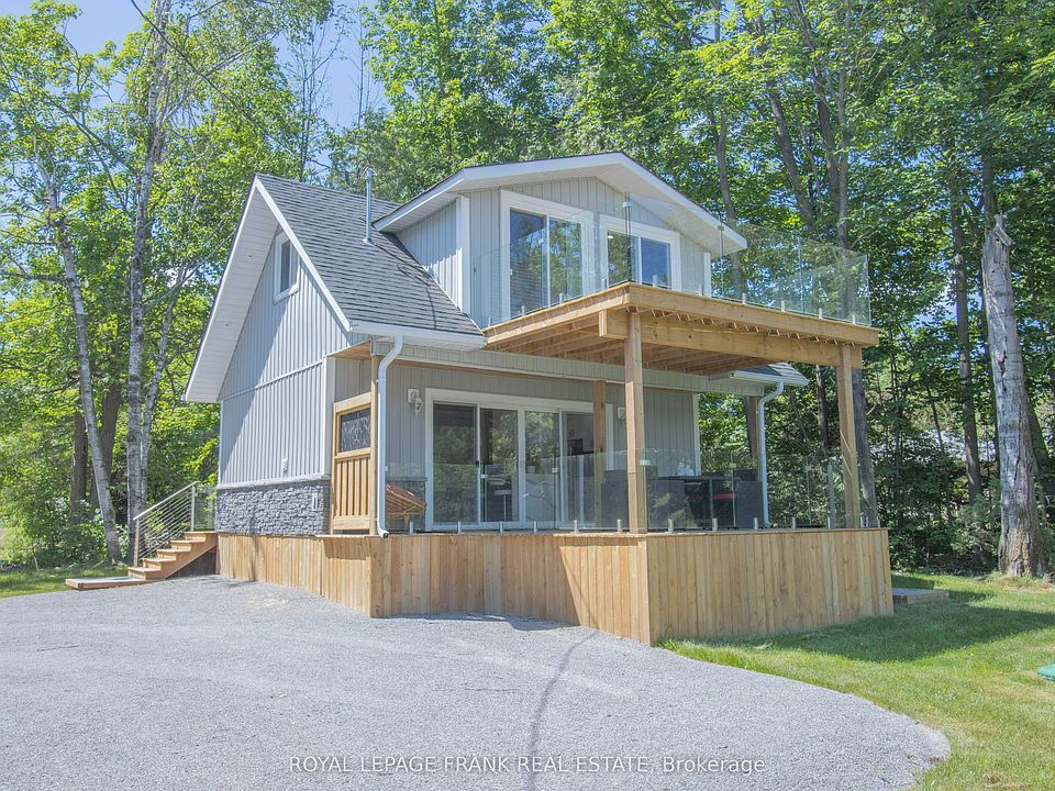 Welcome to your new four-season waterfront oasis, perfectly situated just minutes from the Sandbar on Pigeon Lake! This stunning 1.5 bedroom & 1 bathroom, newly built conversion home boasts an unbeatable location at the end of a four-season municipal road. The bay acts as a natural marina, providing excellent protection for your water toys from wind and waves. This property offers an array of impressive features, including an armor stone shoreline, a new drilled well, and an oversized 11,000L holding tank. You'll love the massive upper and lower decks with frameless glass railings, ideal for enjoying the breathtaking views. Inside, the bathroom, a live-edge staircase with a resin landing, and live-edge handrails. The final inspection for this home was granted in January 2025. This one-bedroom plus den home sits on a 44ft x 88ft north-west facing lot, offering protection from the elements while providing stunning views of the bay, lake, and unforgettable sunsets. The manageable lot size is perfect for those who prefer not to spend hours on yard work. This property is ideal for a small family or as a low-maintenance cottage. You can enjoy fishing for bass, musky, walleye, or panfish right from your own property. You'll be surrounded by multi-million dollar homes and benefit from a convenient location, just 1.5 hours from the 401/DVP, with the 407 extending to Highway 115, ensuring a smooth commute. Experience the luxury of living on your own land in a brand new waterfront home for the price of a local condo!