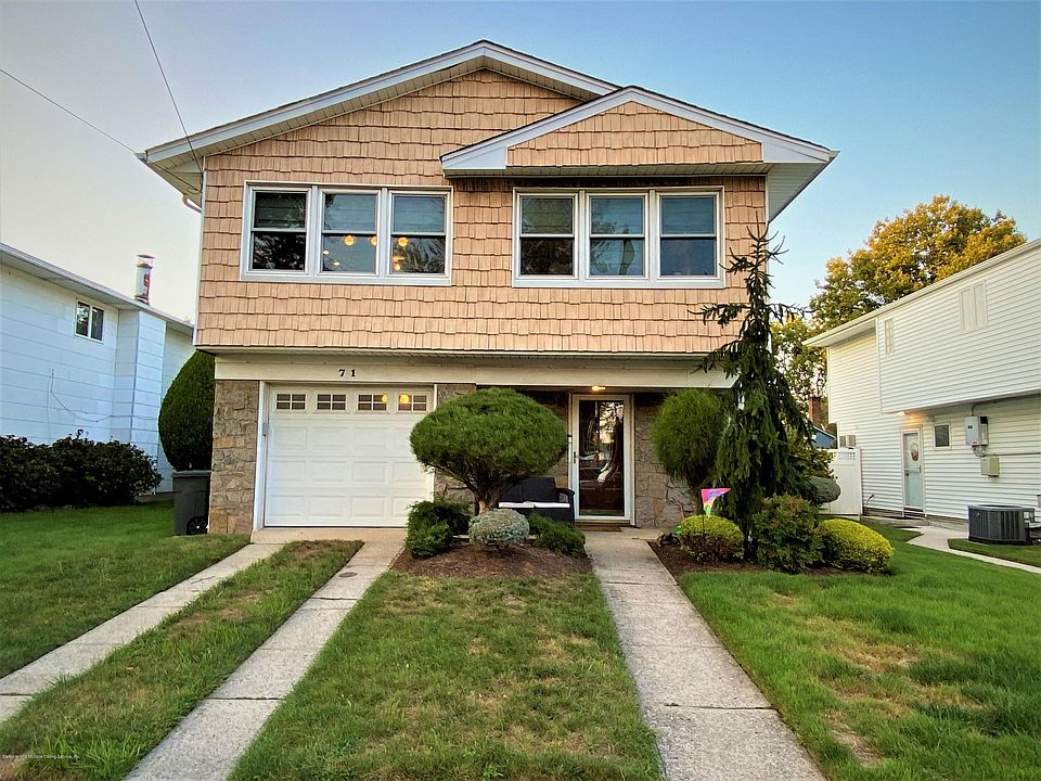 MINT! IMMACULATE 4 BDRM 2 BATH HIGH RANCH ON QUITE BLOCK WITH AMPLE PARKING. OPEN CONCEPT! 2ND FLOOR- NEW EIK W/ MAHOGANY CABINETS & GRANITE COUNTER TOPS W/ XL L SHAPED ISLAND W/ WINE COOLER, 3 BDRMS. FULL BATH WITH DOUBLE VANITY AND GLASS SHOWER DOORS., OAK FLOORS/STAIRS/RAILING. 1ST FL- 4TH BEDROOM, FAMILY ROOM WITH 6 INCH PLANK WOOD FLOORS. , 3/4 BATH W/ GLASS SHOWER DOORS, UTILITY ROOM WITH 2 ZONE HEATING AND CENTRAL AC. GARAGE ACCESS WITH WELL KEPT GARAGE WITH ELECTRIC GARAGE DOOR. SLIDING DOORS WITH BUILT IN BLINDS TO REAR YARD/PATIO. SOLAR PANELS WITH LEASE. MID ISLAND LOCATION CLOSE TO SHOPPING AN PUBLIC TRANSIT. GHW TANK 6/2013