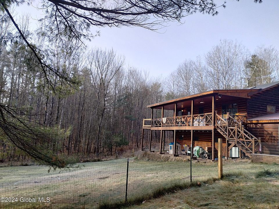 Beautiful log sided home on over 5 acres at end of dead end road. Barn, small pond, 2 car garage and outbuildings. Outdoor wood furnace. The home has an open floor plan with vaulted ceilings. 4 bedroom and 2 full baths. Great home.