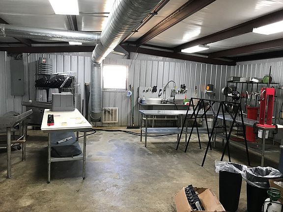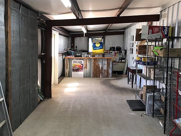 Main building with 1911 sq ft was built for a meat market and meat processing business. Could be used for many other purposes.. The apartment is 648 sq ft for comfortable accommodations . Additional storage building has 264 sq ft. Information is from Recent appraisal.