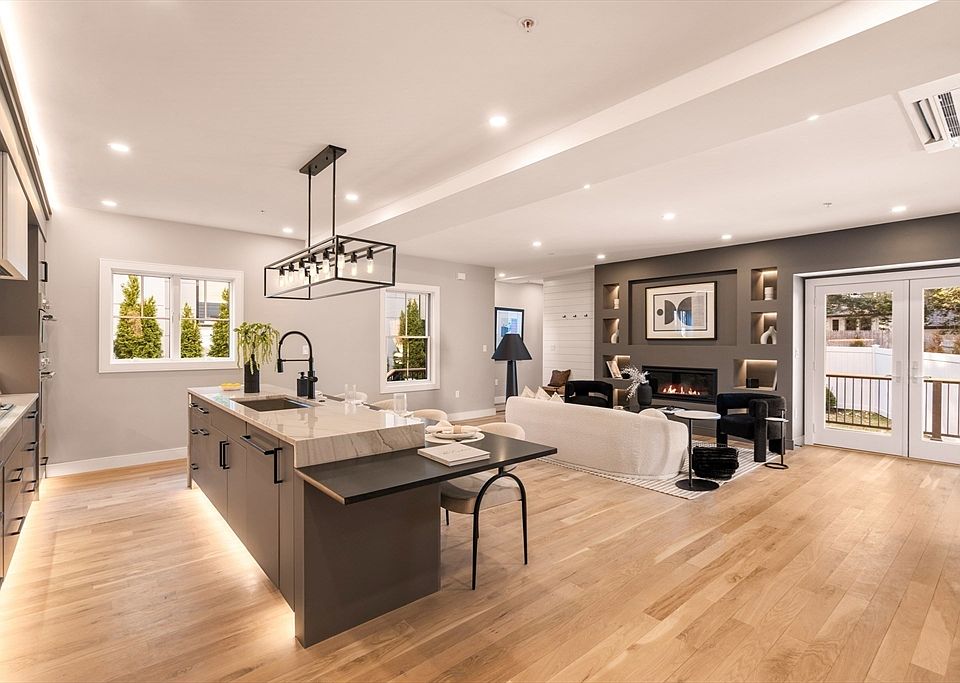 This stunning new construction condo has it all - 3 beds, 3.5 baths, elevator, 2-car garage, private fenced yard w/deck and patio! Inspired design and exceptional attention to detail combine to create a sophisticated, comfortable and versatile living environment. Elegant living room features gas fireplace, built-ins, and French doors that open to deck/yard, allowing for easy indoor-outdoor lifestyle. Well-appointed kitchen offers Thermador appliances, custom cabinetry, large island w/breakfast bar, dining area, wet bar, pantry. Family room offers flexible use as media room, playroom, home office. First-floor bedroom suite features spa-like bathroom. Upstairs primary bedroom suite is a sanctuary, complete w/luxurious bathroom, walk-in closet, balcony. Second floor has add’l bedroom with en suite bath, plus laundry area. Private elevator access from garage to all floors. Front entrance w/mudroom area. Convenient to shops, restaurants, schools, public transp’n, Longwood Medical, downtown.