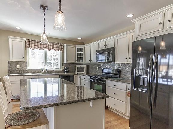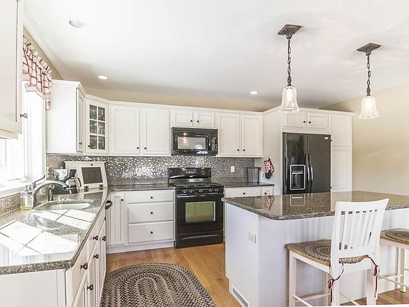 Gorgeous 3 bedroom, 2 bath ranch home (looks like a cape). Hardwood floors throughout, gorgeous eat-in country kitchen with granite countertops & decorative backsplash, fully applianced kitchen with gas stove, all 3 bedrooms on first floor. Master bedroom has walk-in closet and master bath with tiled oversized shower and double vanity. 2 other bedrooms on opposite side also have hardwood floors. Living room is a great size with fieldstone fireplace and pellet stove insert. Second floor is a huge bonus room or make this your master suite. This home is equipped with central air and a Rinnai on demand high efficiency tankless hot water heater. Full walkout basement with double doors and tons of storage. Generator hook-up, 200 amp electric and security system. Outside you have 1.79 acres abutting Hollow Brook with a great yard fenced on one side, 2 car garage and above ground pool. There is a nice front porch and rear trek deck.