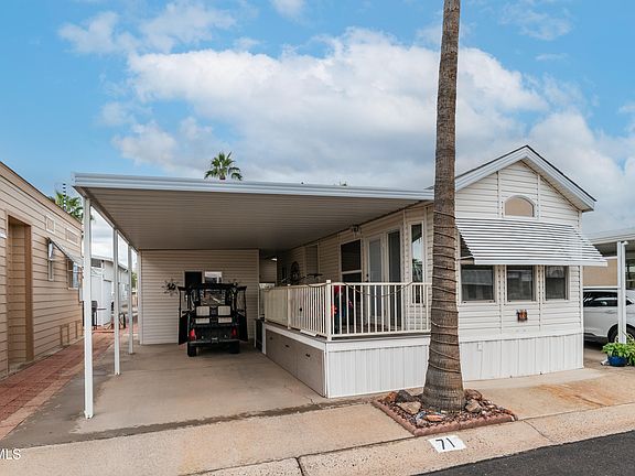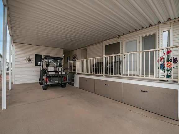 Get ready to live the dream in Golden Vista where you actually OWN the land & the only thing more excited than you will be your friends when they see this home with its bonus casita. Step onto the large tiled deck that practically begs you to sit down with a cup of coffee or maybe something stronger. Walk inside to a bright living area with vaulted ceilings, bay windows, real wood cabinets, laminate wood floors & an electric fireplace that gives instant cozy vibes without you having to chop a single log. The kitchen has everything you need including a flat top stove, microwave, fridge freezer, dishwasher, pantry & RO system so you can feel fancy while staying hydrated. The bedroom comes with a built in vanity desk, a lift & store bed that hides all your secrets, mirrored closets & enough storage to make you feel like a minimalist even if you are not. The full bathroom keeps everything comfortable while the hallway bonus closet gives you even more places to stash your stuff. Now let us talk about the casita because this little gem is like having your own guest suite, hobby room, nap zone or quiet escape depending on the day. It offers a half bath, stacked washer dryer, a wall AC unit, loads of storage & even a fridge freezer just in case you need backup snacks. Through the enclosed breezeway you will find a private patio area perfect for enjoying the Arizona weather while contemplating how you got so lucky to live here. This home is tastefully furnished, move in ready & placed in one of the most fun resort communities around. Golden Vista is packed with endless activities, friendly neighbors & good vibes at every corner. Come see it before someone else claims your future happy place.