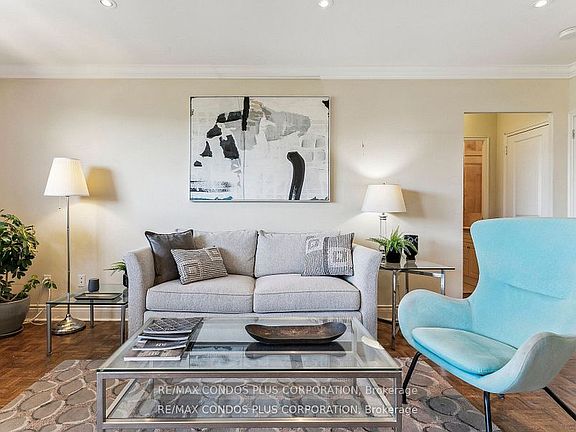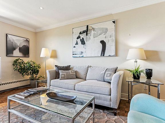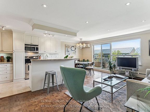 Buyers & Agents check this out! Turn Key Unit that checks all the boxes! Value-Space-Location! Top Floor, 735 Sq. Ft. 1 Bdrm. Dining Room W/Sliding door W/O to Private 138 Sq Ft Balcony-only 3 one BR units have this size Superb bright S/W Panoramic View on Quiet North York residential Street W/Multi million dollar Townhomes. This full reno (gutted 15 years ago) Total Custom Upgraded unit W/continuing updates to present HAS Large thermal windows-smooth ceilings-crown moldings-7 in. baseboards. 2 Panel doors-Recessed lighting & tracks-Updated Electrical W/Extra Decora wall outlets & Dimmer Switches- High end finishes. 13 Ft Granite Counters. Kit w/12 drawers-abundant storage upper Cabinets - spacious Base cabinets -Chrome Lazy Susan-Slat wood Wine rack. Large Breakfast bar, Travertine stone Backsplash & Flooring. Ready for Gourmet cooking & Sumptuous entertaining--before strolling to the private 31.8 ft Updated April 2025 Balcony to enjoy a beautiful evening view. LRT on Eglinton East. Bermondsey & Victoria Park stops working soon, Minutes to all amenities in multiple Plazas & Bus to Downtown. Note low ALL inclusive Maint.+Taxes ONLY $604.51 Do not miss out on this markets amazing opportunity. Motivated Seller!