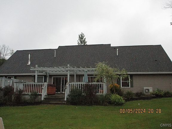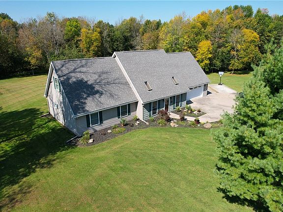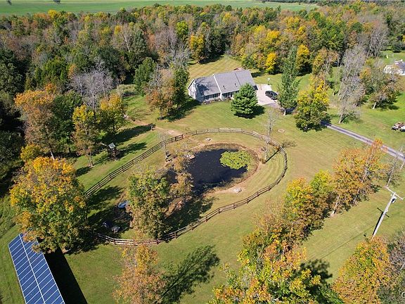 With 16 ac, this 2 Story ,4 bedroom,2 1/2 bath ,vinyl sided,contemporary style home w/solar panels minutes from village of Lisbon is a must see. cLICK ON VIDEO TOUR/ OR SEE MORE VIRTUAL TOUR(ZILLOW) Main floor features vaulted ceilings to enhance the open floor plan of the Living (Gas FP),dining area &kitchen.2 bedrooms,full bath &/laundry complete main floor. Upstairs on one side of home is primary en-suite,on other side of home is 4th BR. In-floor radiant heating, wall heat /AC units in 5 rooms..Outside is expansive deck & above ground pool.(shed for pool equip) Lovely, fenced-in pond in front.Oversized 2 car attached garage w/ a room housing mechanicals & half bath. outbuildings include 1 car garage & chicken coop/lean to. Newer roof,seamless gutters, generator included.Acreage behind home features trails for ATV. Schedule a showing today.