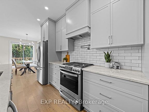 Modern Elegance Meets Custom Craftsmanship A Truly Exceptional 2022 Build. Step inside this thoughtfully designed home with premium features that set it apart from the ordinary. From the moment you arrive, the striking modern exterior, accented with natural textured stone and durable Hardie board siding, makes a bold, stylish statement. A grand 11-foot-high front entry welcomes you into a bright and beautifully crafted interior. The heart of the home is a state-of-the-art kitchen, complete with custom cabinetry, designer hardware, and a one-of-a-kind quartzite countertop and island. Gourmet cooking is a dream with a premium six-burner gas range, pot filler faucet, and high-end appliances that will inspire any home chef. Designed for seamless entertaining, the open-concept main floor flows effortlessly between the living and dining areas, anchored by a sleek linear gas fireplace. Oversized windows and 9-foot ceilings on both the main and second levels flood the home with natural light, highlighting the warm tones of the wide-plank engineered white oak flooring and stairs. Upstairs, the spacious primary suite offers a peaceful retreat, featuring a walk-through closet and a luxurious private ensuite. Secondary bedrooms are generously sized and share a full bathroom. Laundry conveniently located on this level. The lower level adds versatility with a separate side entrance, full bathroom, and a large bedroom or home office, ideal as a private guest suite, teen retreat, or easily converted into a legal Secondary Dwelling Unit (SDU) with modest upgrades. Outside a beautifully finished backyard that offers a private oasis with minimal upkeep, perfect for relaxing, entertaining, or enjoying warm evenings with ease. Perfectly situated close to shopping, transit, and minutes to downtown, this turnkey home offers the perfect blend of modern comfort, thoughtful design, and unbeatable location. Don't miss the opportunity to fall in love with a home that truly has it all.