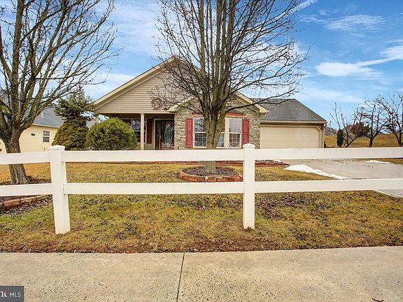 Freshly updated 3-bedroom, 2 full bath Rosewood model ranch home is your tranquil new home oasis! She has covered front and back porches and a garage that dreams are made of! What sets this home apart from others in the community are the additional pocket doors in both baths and the extra-oversized garage that includes A/C and a gas wall heater - perfect for the car enthusiast, a woodworker or tinkerer, or for lots of storage! The living room is open to a grand kitchen with a large center island, tile backsplash and a generous dining area with bay window. Also connected to the living room are French doors that open to a bedroom that could also double as an office or den. The primary suite includes a walk-in closet and full bath with a walk-in shower with brand new door and dual sink vanity that has also been freshly painted, along with the hall full bath vanity and utility sink in the laundry room. She has been painted throughout sporting new vinyl plank flooring in the baths and laundry room and new wall jewelry to include all new outlets, switched and vent covers. The laundry room is conveniently located between the hall and garage and includes a space-saving stackable washer and dryer. The home is economically heated with natural gas forced hot air and cooled with central AC. From the back porch you can enjoy the common space with benches, shuffleboard, horseshoes, with a short walk up the hill you will find a dock with a screened-in gazebo overlooking the mountain and stocked fishpond with fountain, and a tastefully appointed club house featuring a large room for personal or community gatherings, full kitchen with island, cozy gas fireplace, community run activities and library, and for an extra fee, fitness room access. Other community amenities include security gates at all entrances and walking trails. This exclusive, quiet lifestyle comes with your full ownership of the home as deeded airspace rights and a 29-year, renewable, land lease for your lot and a monthly fee of $583, which also includes your sewer, trash, and recycling. Pets are welcome and limited to two per household. Conveniently located to shopping, restaurants, entertainment, golf, doctors and hospitals, and major highways. Welcome to your new home!