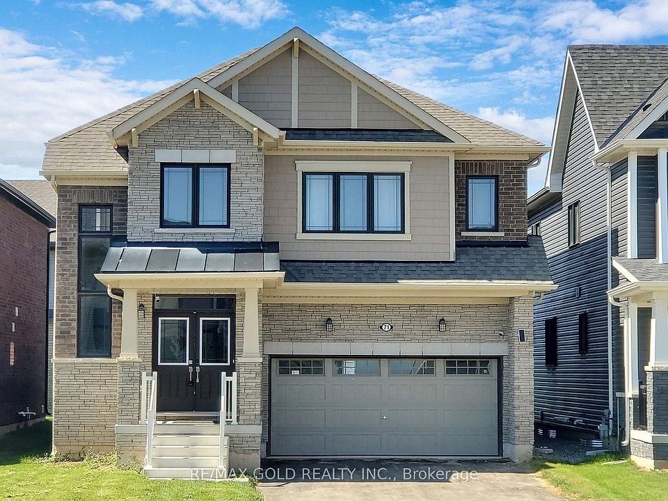 Welcome to this stunning detached home, less than 3 year old and boasting 2,837 sq. ft. of modern elegance. The striking stone and brick front, paired with a grand double door entry, sets the tone for luxury living. This spacious home features 4 large bedrooms and 4 well- appointed bathrooms, providing comfort for the entire family. The bright and open floor plan includes a cozy family room, a charming breakfast area, and a formal dining room ideal for hosting dinners. The chef's kitchen is a true centerpiece, showcasing sleek quartz countertops, stainless steel appliances including a gas stove range, and ample storage in the pantry room. The adjoining mud room provides additional convenience for busy lifestyles. With a 9 ft. ceiling height throughout, this home feels expansive and inviting. A 2-car garage offers plenty of parking and storage.