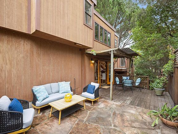 Welcome to 71 Live Oak Ave. Tucked away in the hillside yet minutes from downtown Fairfax, this 3-bedroom, 2.5-bathroom home is full of character and ready for its next chapter. The lower level features a cozy dining and living room with wood-burning fireplace, perfect for relaxed evenings. The kitchen and breakfast nook on the main floor open to a patio, offering an indoor-outdoor flow that is perfect for gathering and al fresco dining. A convenient half bath sits just off the stair landing, while two bedrooms and a shared bath are down the hall. The top floor is dedicated to the primary suite, complete with a walk-in closet. Wood beam ceilings add warmth throughout, and access to decks on every level brings the outdoors in. The attached garage adds everyday convenience and the deep, private lot offers plenty of possibilities. In the award-winning Ross Valley School District, a 10 minute walk to Good Earth and conveniently close to Fairfax's great restaurants, live music and endless hiking trails, this home offers both privacy and proximity in one of Marin's beloved communities. Bring your vision and make it your own!