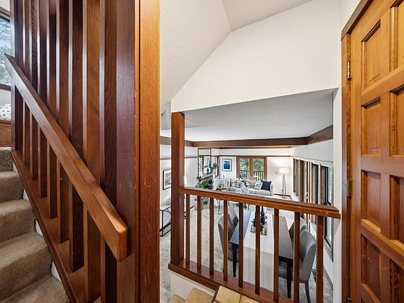 Wood-burning fireplaceDeep private lotDecks on every levelIndoor-outdoor flowWood beam ceilings