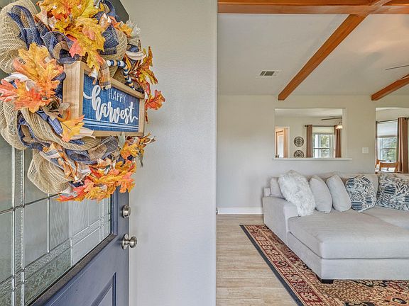 Welcome to your serene 10-acre retreat with barn & wide open spaces! Experience peaceful country living on 10 unrestricted acres with mature shade trees and a 30x40 barn—perfect for hobbies, animals, or extra storage. Located in Waverly Acres, zoned to New Waverly ISD. Just minutes from local conveniences while offering privacy and space to enjoy the Texas countryside. This charming home features a vaulted living room with wood beams, accent-tiled fireplace, and pass-through to a kitchen with white cabinets, gray tile backsplash, and stainless appliances. The primary suite offers a tray ceiling, sliding barn door to the ensuite, and French doors to the backyard. Secondary bedrooms are light, bright, and well-appointed. The detached 2-car garage has a convenient half bath. Large front and back porches with wood ceilings and fans. Start living the peaceful country lifestyle you’ve been dreaming about—schedule your private showing today.