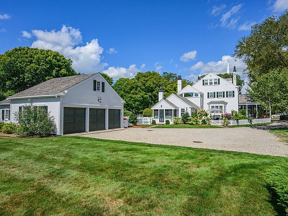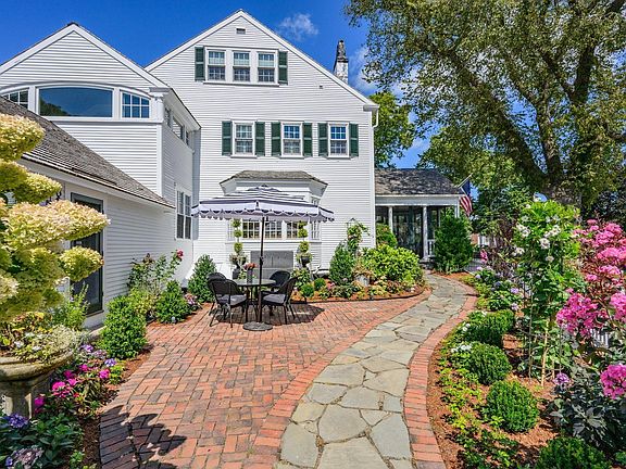 Set in the heart of Falmouth Village, this iconic Greek Revival offers a rare blend of timeless charm and modern comfort overlooking the Village Green. Surrounded by manicured gardens, the meticulously renovated home boasts preserved architectural details and thoughtful updates across three levels. A chef's kitchen with top-of-the-line appliances and a breakfast nook flows seamlessly into sun-splashed living spaces, including a formal dining room, great room, and library with intricate moldings, beamed ceilings, and hardwood floors. On the second floor, the primary suite includes a luxurious bathroom, dressing room, and custom closets, with two well-appointed bedrooms overlooking the Village Green completing the level. The top floor offers two additional bedrooms and a full bath, providing refined accommodations for family and friends. Outside, stone patios, landscaped grounds, and a three-bay garage complete this gracious setting, just steps from boutique shops, restaurants, and everything the village has to offer.