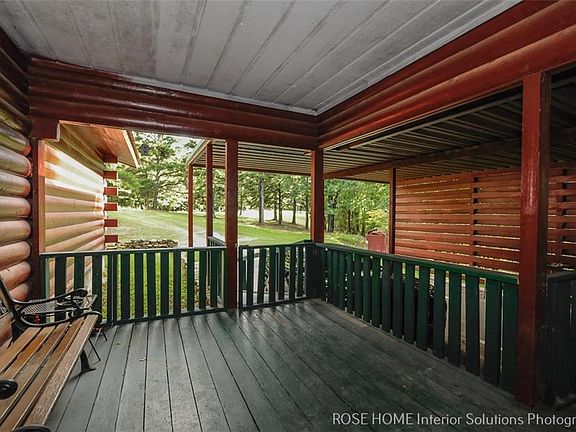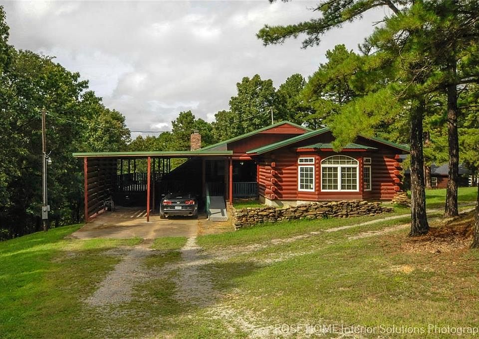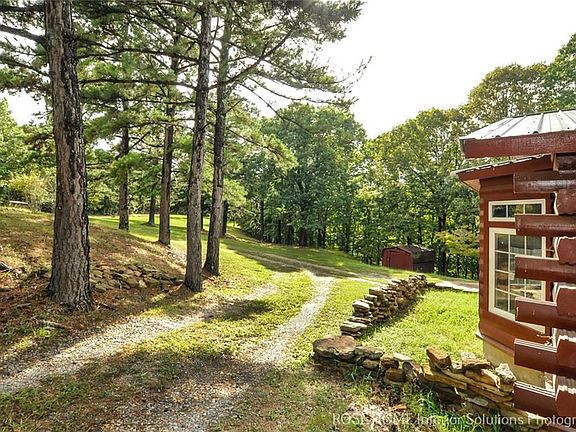 Log Home in Flint Ridge Resort overlooks Clear Lake with large covered patio and porches! Spacious over 2200 sf this 2 bdrm 1 bath home has wood floors & fireplace & good windows! Options with Walk-out basement which has it's own private covered patio. Beautiful lawn, 1.5 acres, mature pines, paved street on the lake side. Gated Community on the Illinois River where ATVs are a way of travel, family amenities, river rafting, canoes and fishing! Clubhouses, golf and restaurant! A wilderness wonder!