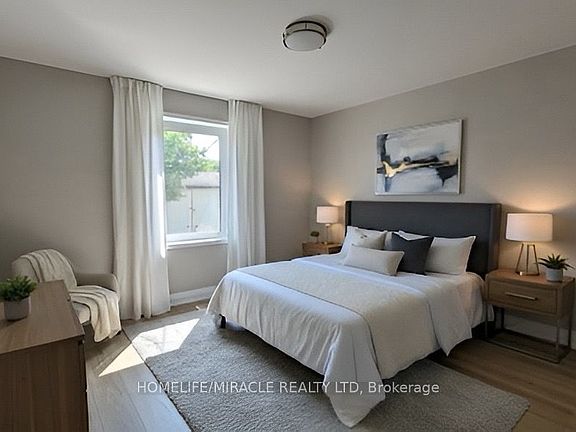 Beautifully renovated in 2024, the main floor of the bungalow is now available for rent. It offers 3 spacious bedrooms, 1 modern washroom, and a bright living room with a good-sized backyard. Recent upgrades include a brand-new kitchen with modern finishes, new flooring throughout, updated vanities and taps, new shower tiles, stylish disk ceiling lights, and fresh neutral paint. A new front entrance door with updated door handles, large windows for natural light, and all new contemporary baseboards. Conveniently located on a bus route, this home combines comfort, style, and accessibility. The basement is occupied by another tenant, the new tenant taking the The main floor will cover 60% of the total utilities bill.