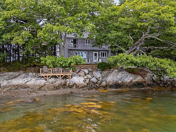 Welcome to this one-of-a-kind seaside retreat at the end of the quintessential Lower Flying Point peninsula. Set on nearly an acre with over 600 feet of your own beachy, rocky & accessible water frontage, this rustic shingle style Salt Box cottage offers an oceanfront escape like no other. A winding forest trail meanders along the edge of your own coastal oasis, where the coming & going of the tides brings daily delights from many vantage points; magical sun & moonrises, vibrant sunsets that illuminate the islands, the sound of water lapping the shore, a front row seat to abundant wildlife & moonbeams shimmering across the ocean that reflect & dance onto the ceilings while you drift off to sleep. This property instantly welcomes one to indulge in the natural cycles & the pulse of life that surrounds. Efficient 3-bedroom, 2-bath home blends character & comfort with large windows oriented to capture the seascape of the islands & beyond, built-ins, exposed beams, skylights, balconies & decks that oblige one to immerse in the beauty of this special place. The practical kitchen, spacious pantry with washer/dryer, office space, open floor plan, propane heaters & cozy wood stove make the home fully functional, while still offering room for your imagination to shape its next chapter. Adding to the charm is a detached sleeping cabin—perfect for a true outdoor overnight experience, a guest hideaway, or simply a quiet spot to unplug & take in the sea air. Mature oak trees frame the easterly exposure, where Ospreys, Eagles, Great Blue Herons, ducks & seals make regular appearances and overhang the many shorefront decks - the decision of the day is where to relax. A workshop shed is very useful, while the island-like setting provides unmatched tranquility. Yet, you're still connected - only 15 minutes to Brunswick & 30 minutes to Portland. Dreamy, peaceful & rare, this oceanfront property offers the chance to get away from it all while staying close to everything that matters.
