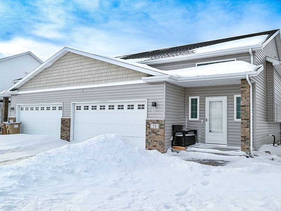 This beautifully maintained three-bedroom, two-bathroom townhouse is located in the highly desirable Stonebridge Farms community in Northeast Minot. Designed with comfort and style in mind, this home offers a functional layout and modern upgrades throughout. The upper level features vaulted ceilings that create a bright and airy atmosphere. Here, you’ll find two spacious bedrooms, a newly remodeled full California bath with updated flooring, a stylish vanity, and fresh paint. The large family room seamlessly flows into the kitchen and dining area, making it perfect for both daily living and entertaining. The kitchen is equipped with stainless steel Samsung appliances, generous counter space, and an island. It also opens to a deck, providing a perfect space for outdoor gatherings. The lower level offers additional daylight, living space with a third bedroom, a generously sized family room, a full bathroom, and a convenient laundry room. The entire home has been freshly painted, enhancing its clean and inviting appearance. Outside, the home features a well-maintained lawn with a sprinkler system and a vinyl fence that adds privacy to the outdoor space. The attached two-car garage is fully finished and includes floor drains and an electric vehicle charging outlet for added convenience. Living in Stonebridge Farms means access to fantastic community amenities, including playgrounds, walking paths, picnic areas, and open green spaces. Its prime location offers an easy commute to Minot Air Force Base, making it a perfect home for those seeking a vibrant and welcoming neighborhood. Call today for your private showing.