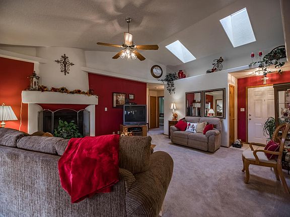 Perfect Ranch Style Home on 1 acre with Natural Gas! These homes are getting harder to find, 4 bedroom with spit master configuration, nice master bath with his & her closets,separate bathtub shower units and a water closet. Master is large with sliding glass doors to back covered patio. All appliances stay, washer and dryer included. Nice breakfast bar in the kitchen, dining area has bay windows that opens to the great room with kiva style wood burning fireplace. Living room is filled with light from 2 skylights, shows off your decor with many plant shelf's. This one will not last.