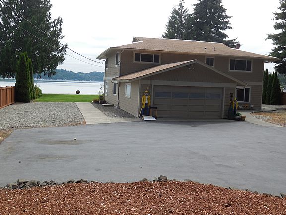 Rare large level waterfront on 1.56 acres and 100 ft of no bank frontage with a bulkhead. Beautiful Remodel. Complete kitchen and bathrooms, flooring, siding, windows, & landscaping. Full-length upper deck off Master bedroom. All the heavy lifting is done. New detached garage gives parking for 6 cars or water toys with room for more parking if needed. Move in and enjoy the views in this full time home or summer home. Gated entrance for security just 5 minutes from Belfair and 35 minutes to Narrows bridge.