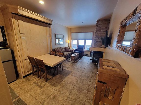 This ski-in/ski-out studio condo at Purgatory Resort is the perfect mountain getaway, offering a cozy retreat with all the comforts of home. Located just steps from the slopes, this property provides year-round enjoyment with skiing and snowboarding in the winter, and hiking, mountain biking, ATVing, and exploring in the warmer months. Inside, you'll find thoughtful features like a full bathroom, a Murphy bed, and a pull-out sofa, comfortably accommodating guests. The fully equipped kitchenette includes a full-size dishwasher and standalone fridge, while the beautiful stacked stone fireplace adds a touch of rustic charm. The condo is tastefully furnished with custom Southwest-style decor, creating a warm and inviting atmosphere. A wood-burning fireplace is the perfect way to unwind after a day on the mountain. This property has great rental potential, ideal for short-term rentals (allowed) or as a private mountain retreat. The condo is being sold fully furnished and turn-key, so you can start enjoying it right away. Owners enjoy added perks like a designated parking space, ski locker, and access to exclusive amenities, including the private spa in the Kendall building (featuring a hot tub, sauna, and steam room) and the resort's owner's club, which offers a pool, hot tub, fitness center, game room, tennis courts, and a private lounge and restaurant. With easy access to all the best that Purgatory Resort has to offer, this condo is a fantastic opportunity to own a piece of mountain paradise. Schedule your showing today and be ready to enjoy slope-side living by the beautiful fall season!