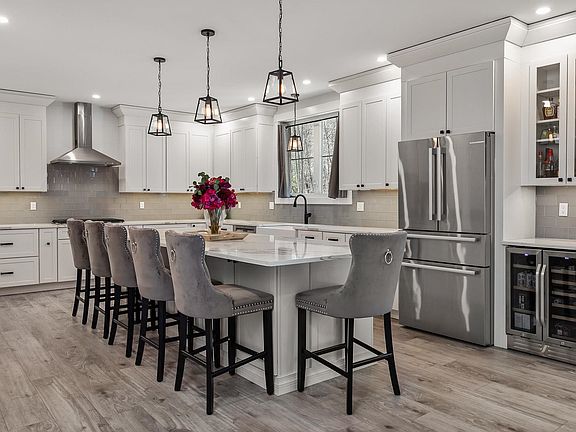 Private residence on 2.59 acres. Built in 2022, this Colonial home was carefully designed with numerous upgrades from initial construction specifications including finished 3rd floor, high quality kitchen cabinets and a Kohler whole house generator. Gourmet high end eat in kitchen features Quartz counters, an oversized Quartz island with seating for 6, abundant white cabinets, tile backsplash, stainless steel appliances plus a wine cooler. Interior flows graciously with wide vinyl plank flooring throughout. Enjoy the open concept kitchen and comfortable living room with gas fireplace. Main level offers a bedroom or office off the front hallway. 2nd level consists of an attractive oversized primary bedroom suite with cathedral ceiling, walk in closet, sensational bath with quartz counters, double sinks, soaking tub, large walk in tile shower with bench and shelves. In addition, a bedroom with ensuite full bath, plus a 4th bedroom, laundry room and ½ bath are also provided. Escape to the 3rd level and relax in the sun filled family room. Terrific outdoor space includes a deck off the main level and a stone patio. 2 car attached garage and full unfinished basement is great for storage. Close to Sagamore Golf Course, Peniston Woods neighborhood, Seacoast Tennis, Knowles Field and a nature trail.